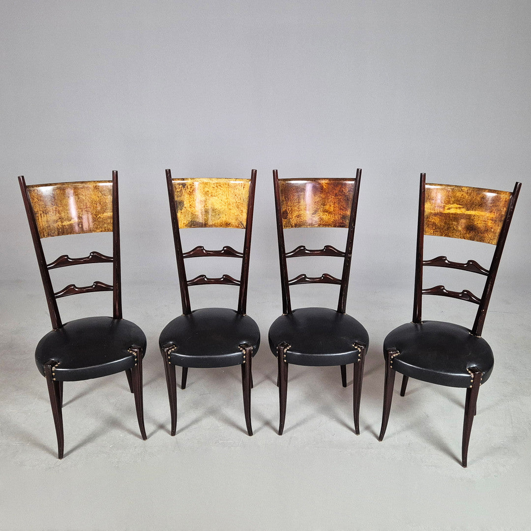 Set of 4 Aldo Tura Style High-Back Dining Chairs – Lacquered Goatskin