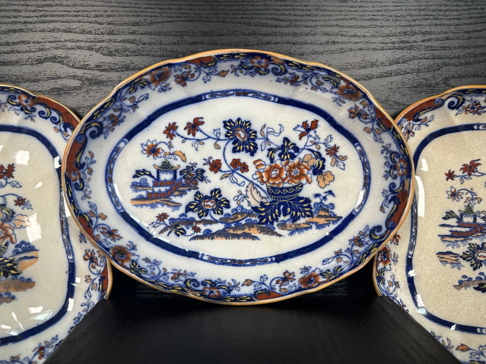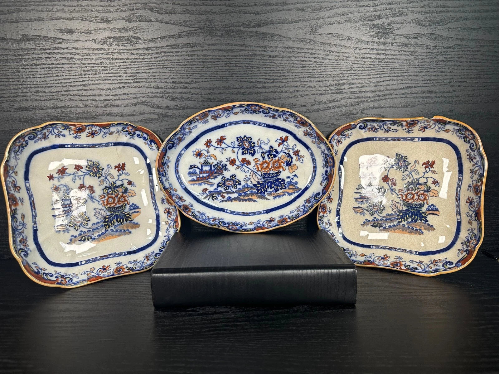 Antique Amherst Japan Stone China Imari Plates – Set of 3 Dishes – c.4716