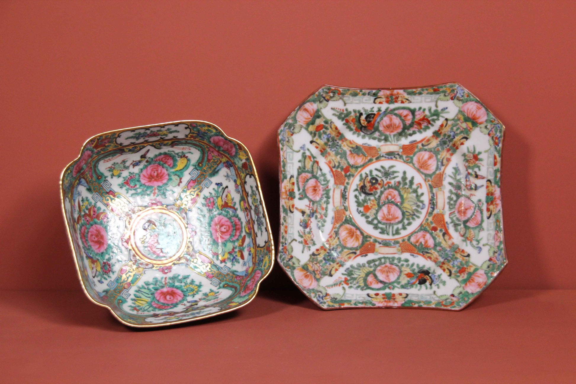 Antique Chinese Rose Medallion Bowl & Underplate – Hand-Painted Set