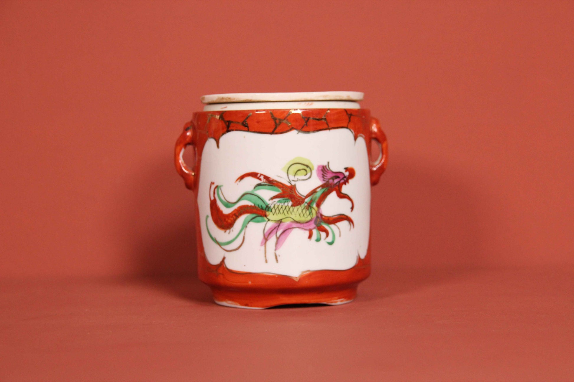 **Chinese Porcelain Tea Caddy / Ginger Jar – Hand-Painted Dragon & Phoenix – Qing**