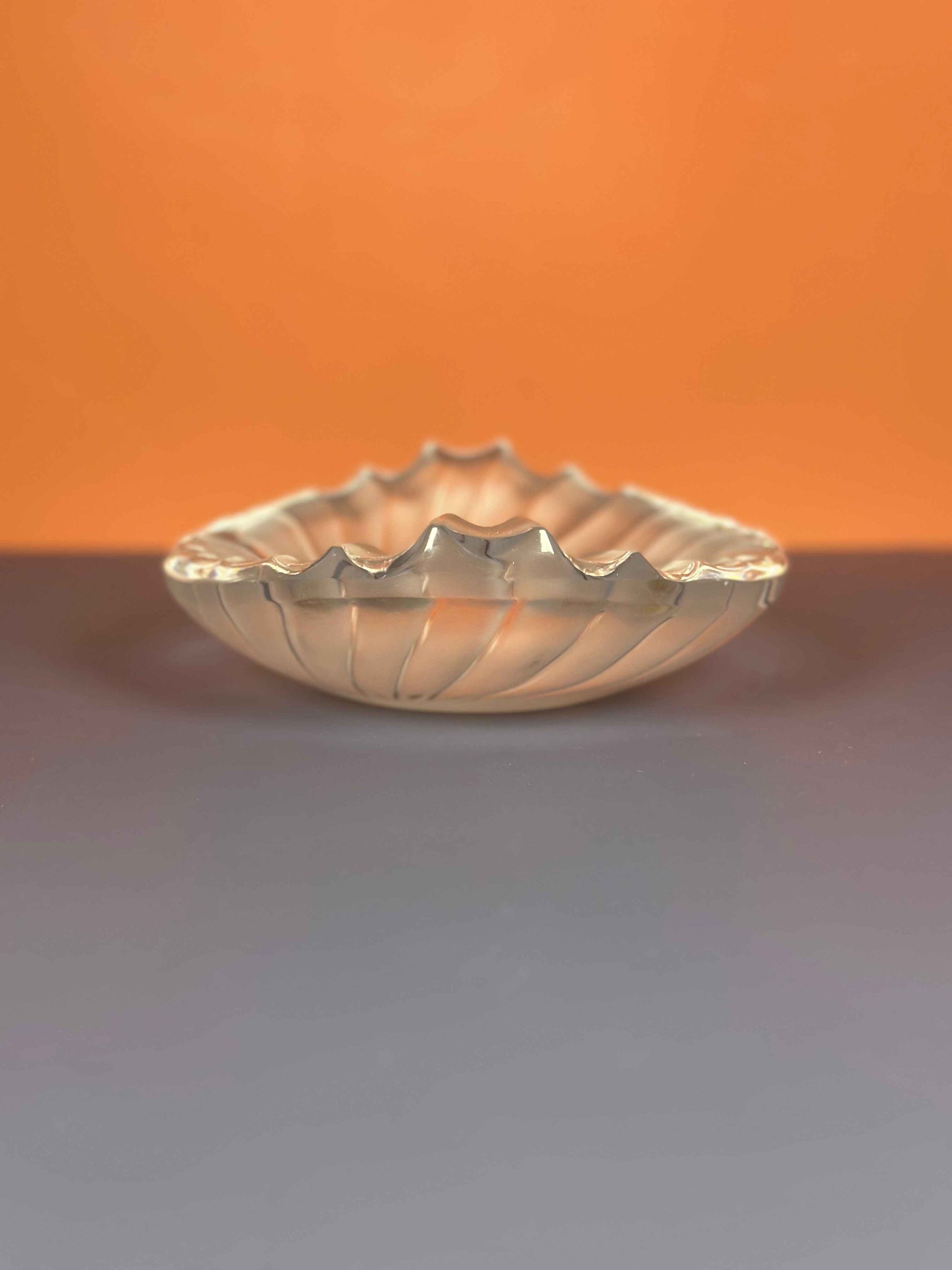 A striking signed Lalique "Vibration" crystal bowl featuring a dynamic swirling design with undulating ridges and frosted detail. This sculptural piece captures movement and light in typical Lalique style, perfect as a centrepiece or statement decor item.