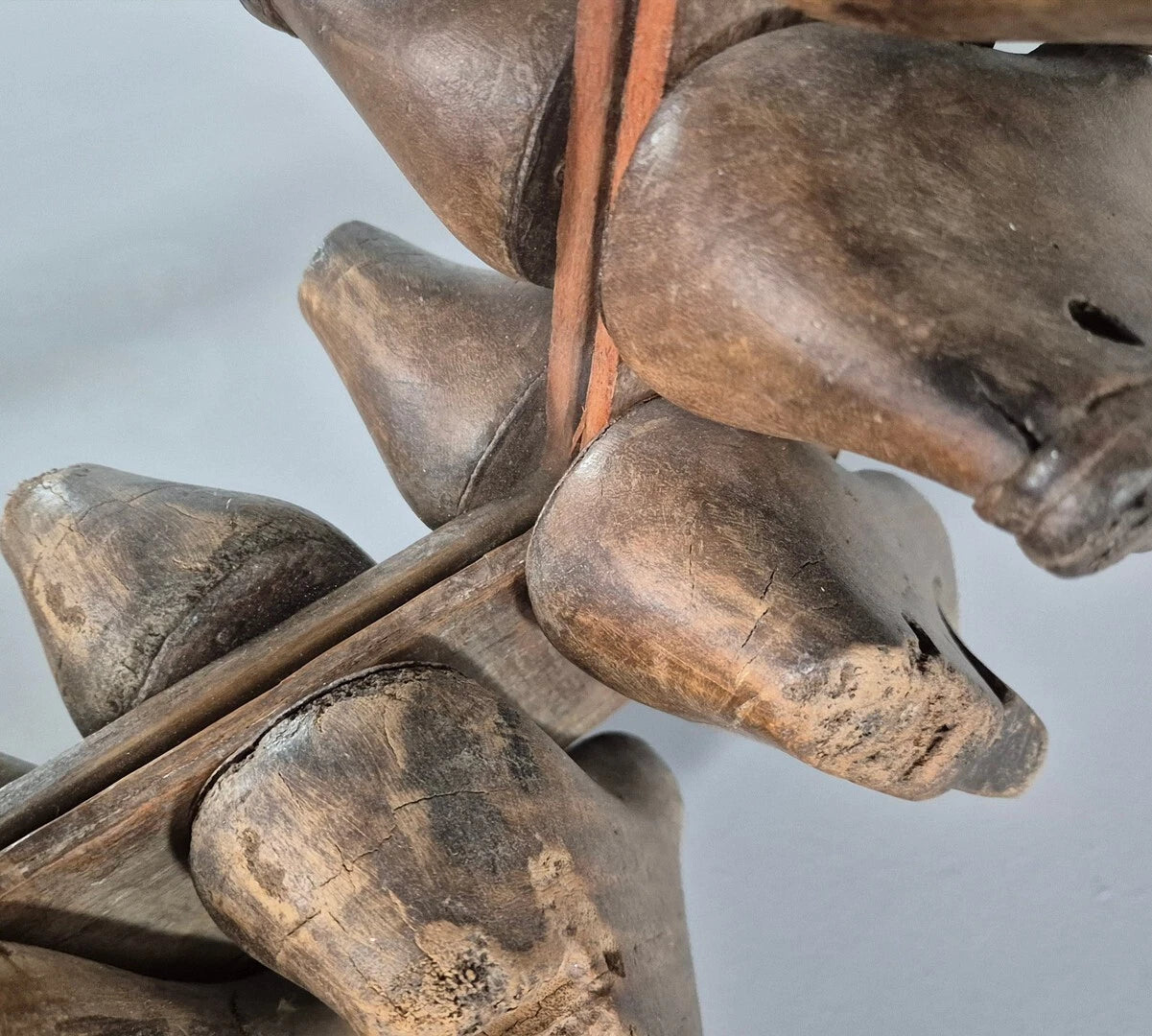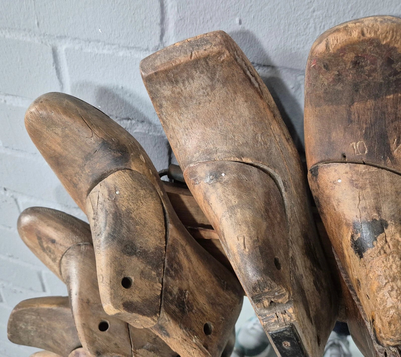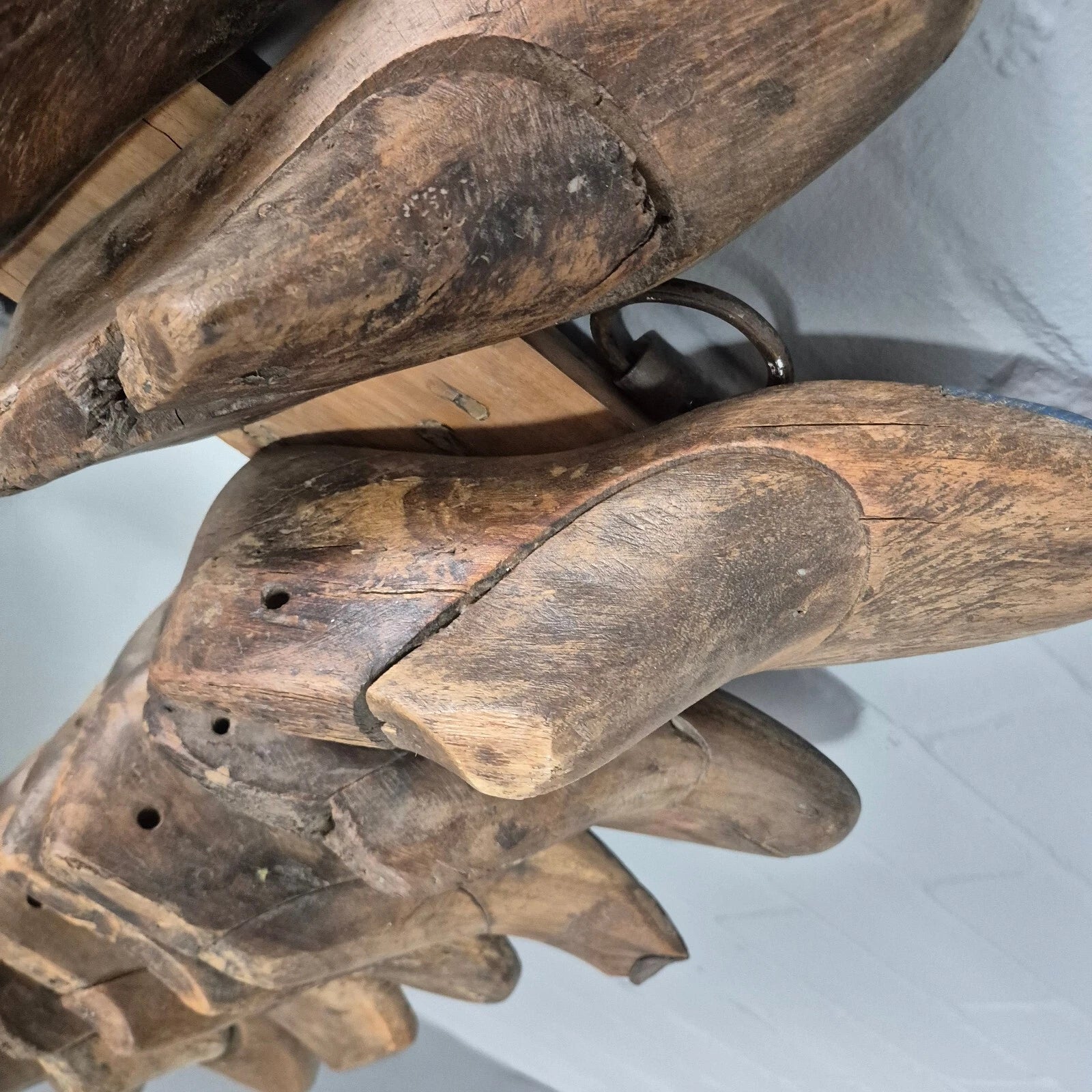 A unique and bold wall mirror framed entirely from reclaimed vintage wooden shoe lasts. A fantastic industrial or eclectic design piece for creative interiors.