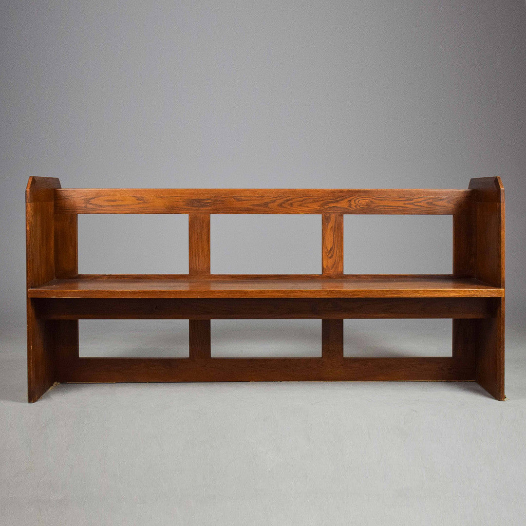 A solid vintage wooden pew bench with minimalist rustic styling. Great for hallways, dining areas, or commercial interiors looking for a classic ecclesiastical touch.